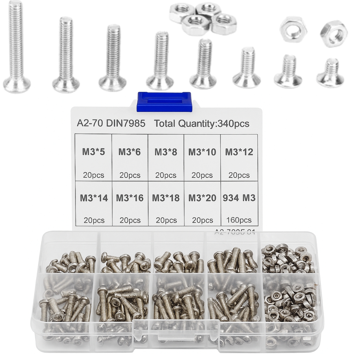 01 - Kit 300 Parafusos Allen M3 Com Porcas 4~16M M