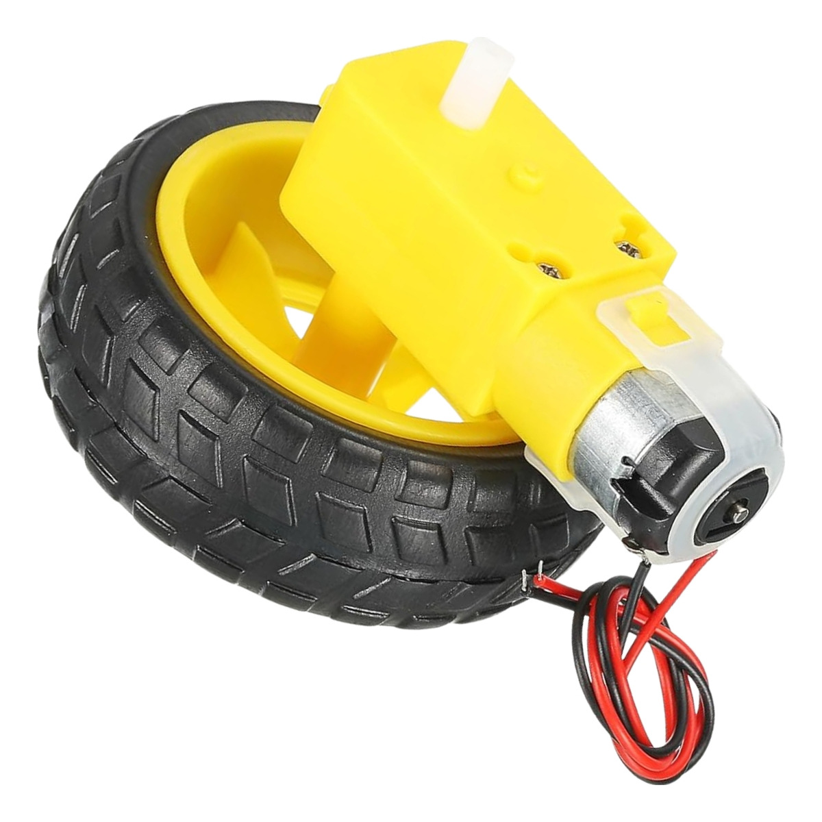 O Kit Motor com Fios Soldados e Caixa de Redução + Roda possui pneu em borracha, o que garante melhor desempenho e evita derrapagens, possui ainda caixa de redução acoplado perfeitamente e motor de bom rendimento, o que possibilita o desenvolvimento de projetos robóticos ousados.
