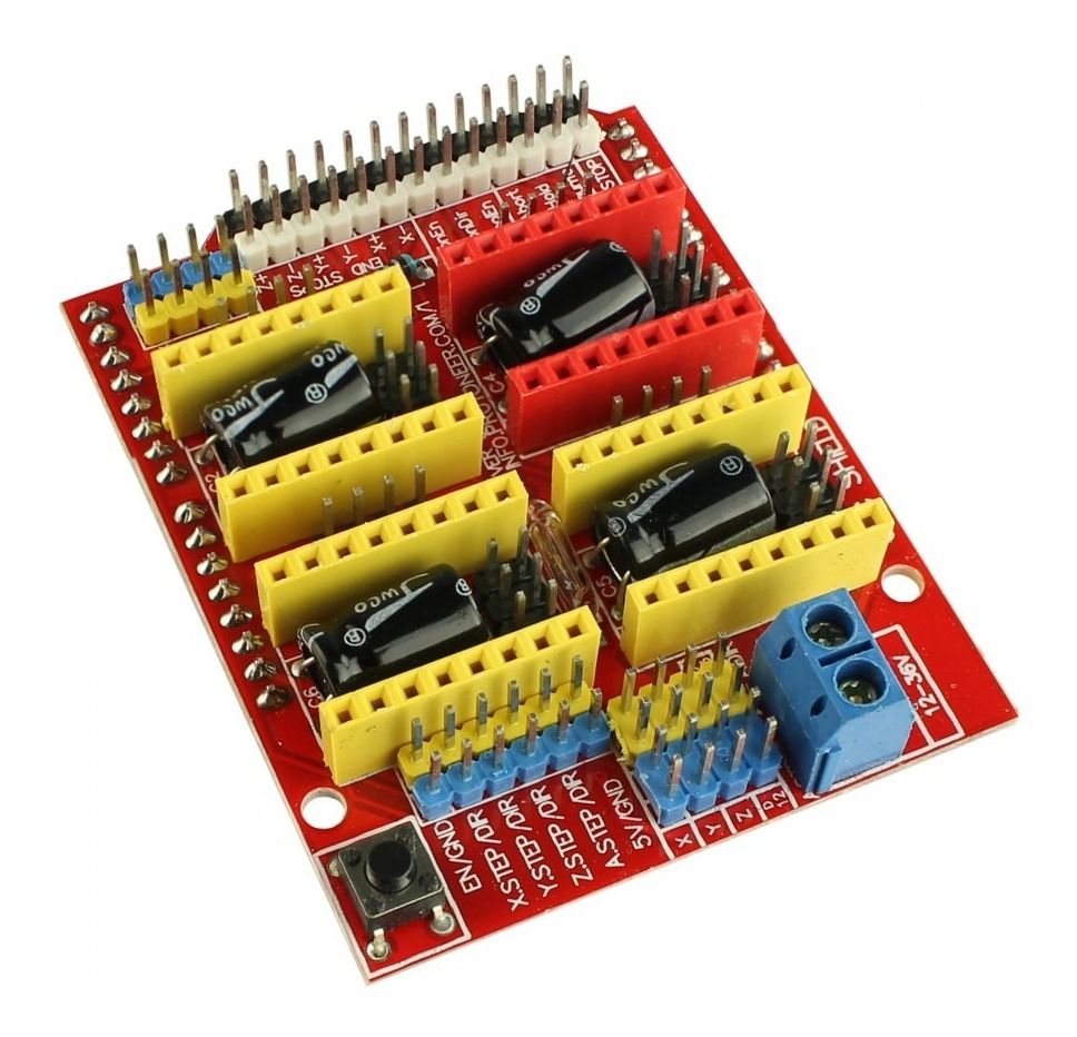 - O CNC Shield V3 foi desenvolvido especialmente para utilização junto à Impressoras 3D e Máquinas de Gravação, onde vem a possibilitar a conexão de Drivers A4988, os quais são reconhecidos internacionalmente pela eficiência no controle de motores de passo.